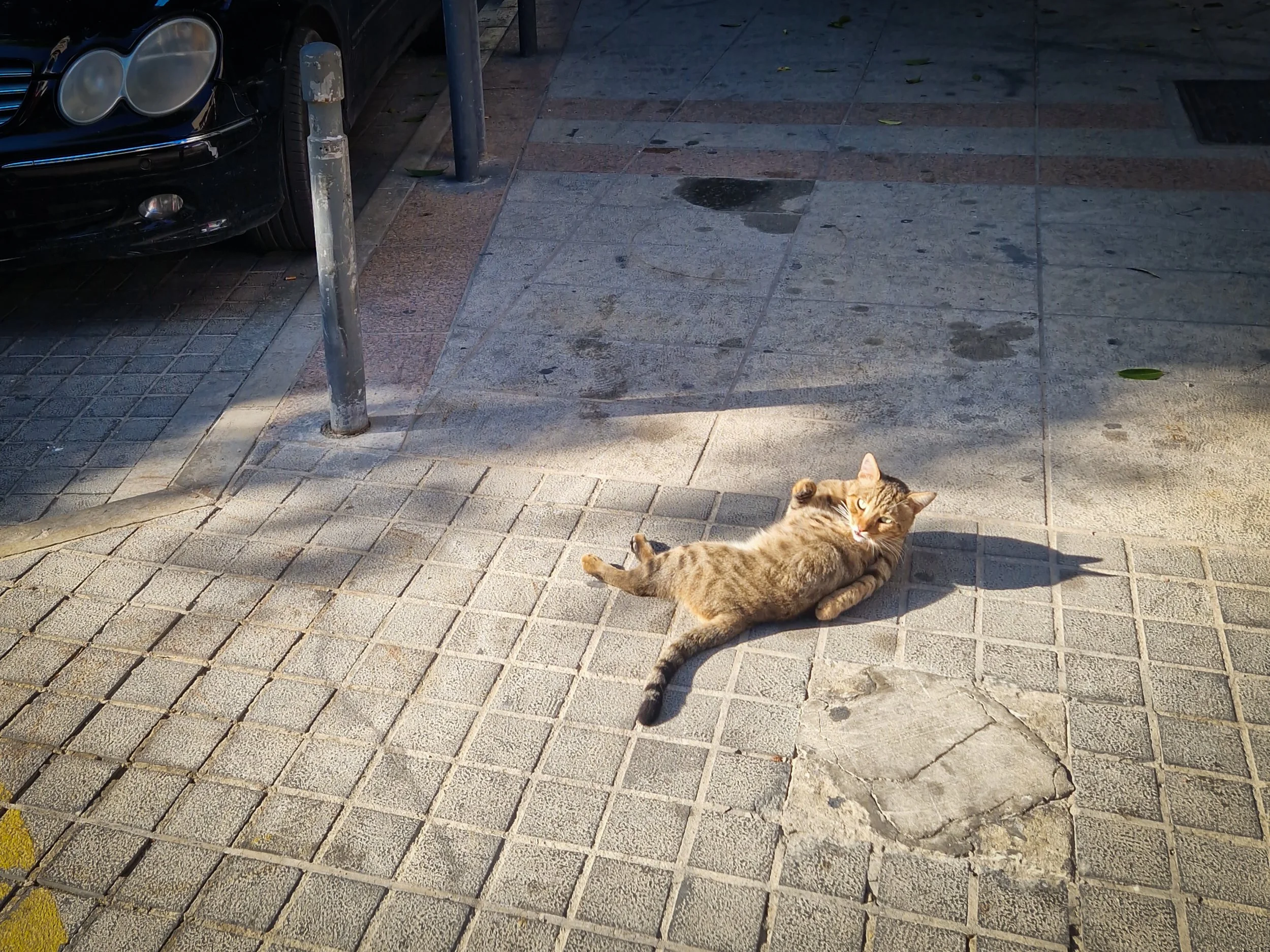 More general observations from the trip were crazy colourful car parks, an egg hotel - complete with hanging egg chairs on its balconies - and the strange harmony between pigeons and cats. It's baffling to me why so many pigeons would risk their lives holidaying beside an abundance of predators, yet I didn't see a single dead bird. The cats are obviously ninjas, feasting efficiently at night and leaving no traces. Another guest filmed a cat scarpering up the beach with a fish after swiping it right out of the sea, and that can only be a ninja hiding in plain sight.